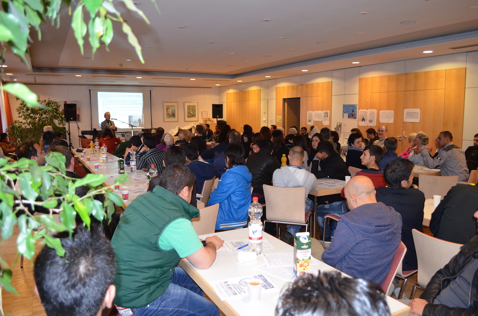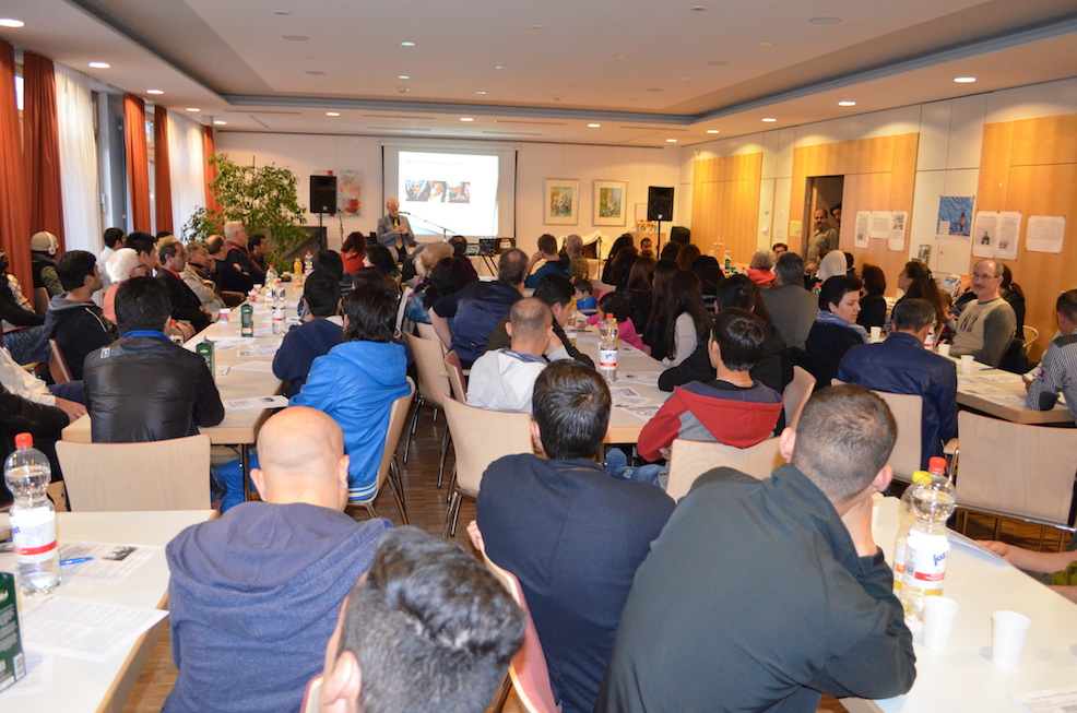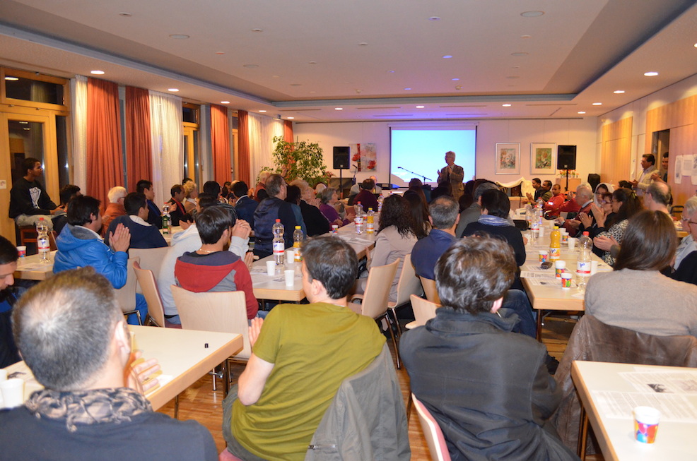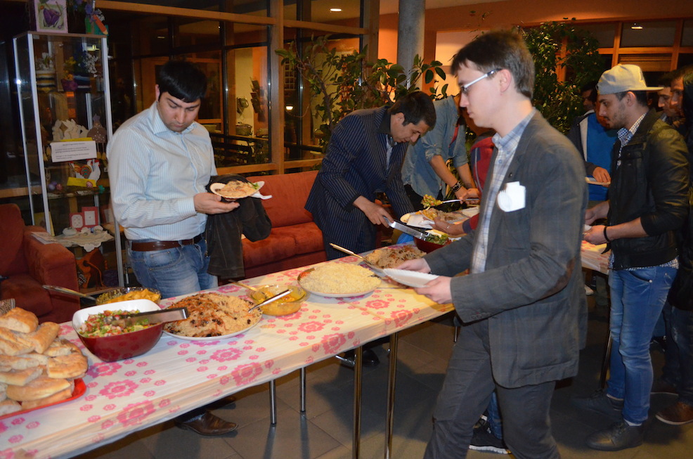 Afghanistan-Interessierte kamen bei unserer Veranstaltung am Gründonnerstag im überfüllten Hofbergsaal auf ihre Kosten: Reiner Braun, Geschäftsführer der Vereinigung Deutscher Wissenschaftler (VDW) und Präsident des International Peace Bureau, berichtete über aktuelle Situation in dem zentralasiatischen Land. Dazu hatten afghanische Familien für die Besucher traditionelles Essen ihrer Heimat zubereitet. Anschließend begeisterten die Brüder Nubi ihr Publikum mit afghanischer Musik und Liedern.